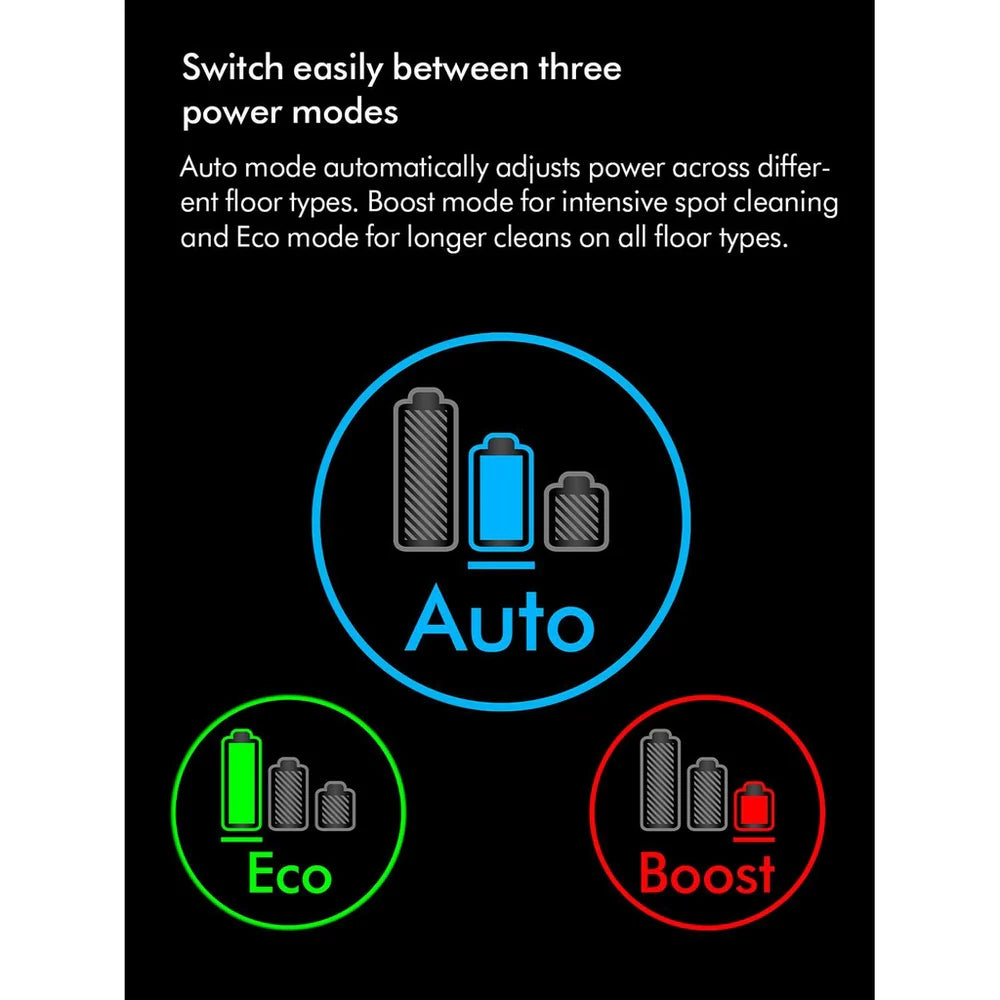 El sensor Dust Detect integrado analiza partículas microscópicas hasta 15 000 veces por segundo y ajusta automáticamente la potencia de succión para adaptarse a su entorno de limpieza. Este sistema inteligente garantiza la máxima eficiencia, utilizando la potencia justa donde más se necesita.