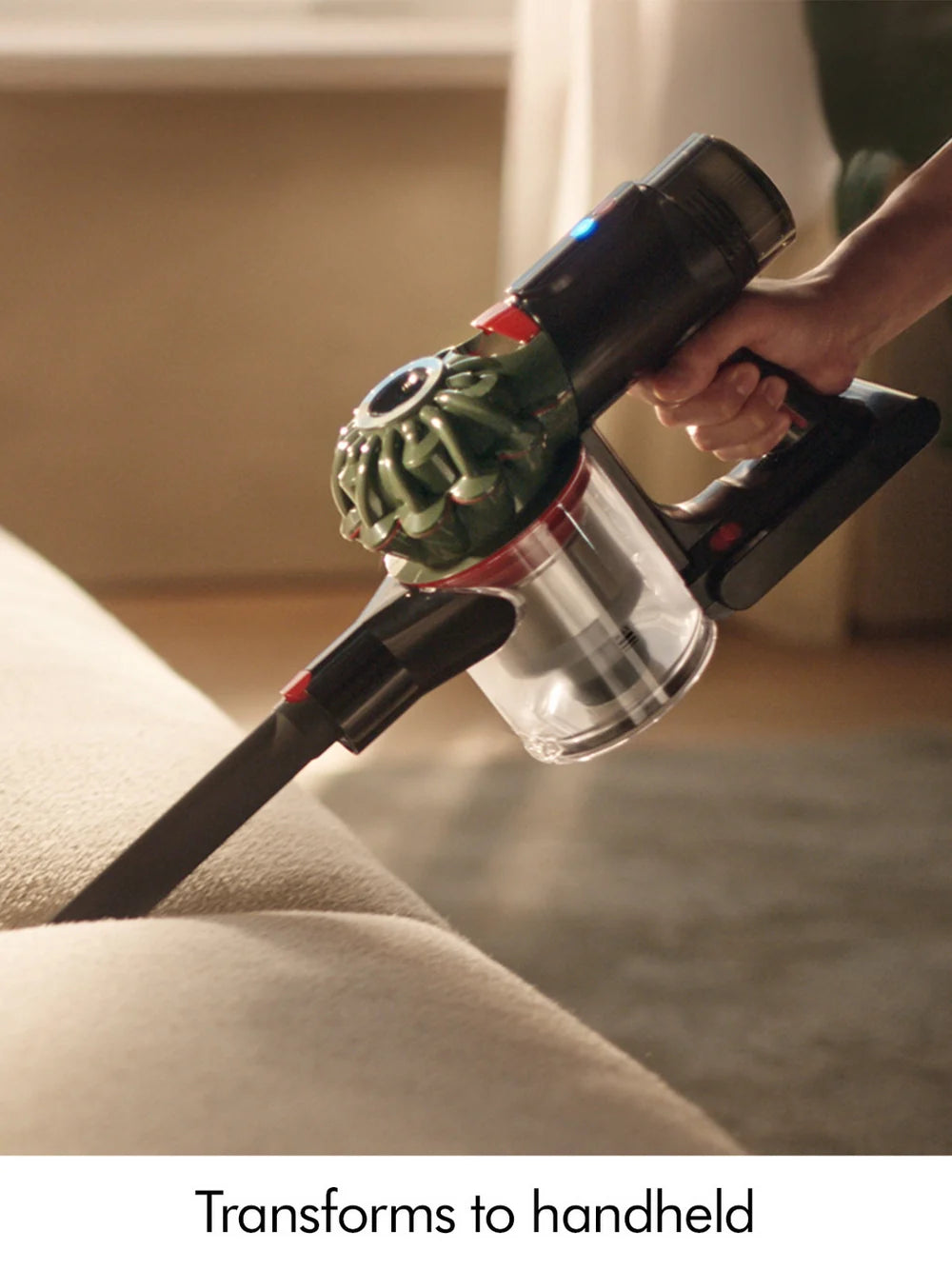 La Dyson V8 Cyclone se convierte fácilmente en una aspiradora de mano para mayor flexibilidad. Las herramientas incluidas incluyen: